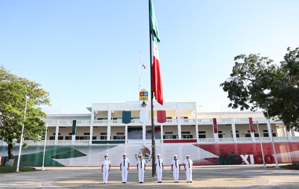 La jornada comenzó con el izamiento de la Bandera Nacional a toda asta por parte de personal de la XI Zona Naval en la Plaza Cívica frente al Palacio de Gobierno. Posteriormente, autoridades de los tres órdenes de gobierno, representantes de la Marina, Ejército, Guardia Nacional, Congreso del Estado y el Ayuntamiento de Othón P. Blanco participaron en la ceremonia oficial.