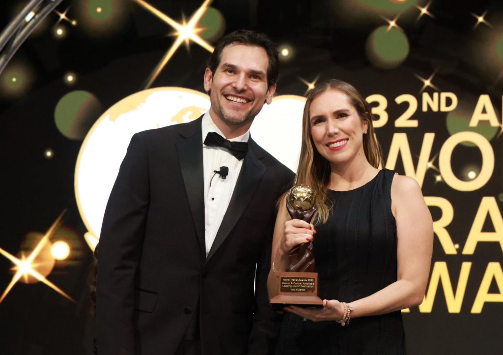 La Presidenta Municipal, Atenea Gómez Ricalde, recibió el reconocimiento de manos del influencer Alan por el Mundo, en una gala encabezada por la gobernadora Mara Lezama Espinosa y el presidente y fundador de los World Travel Awards, Graham Cooke.