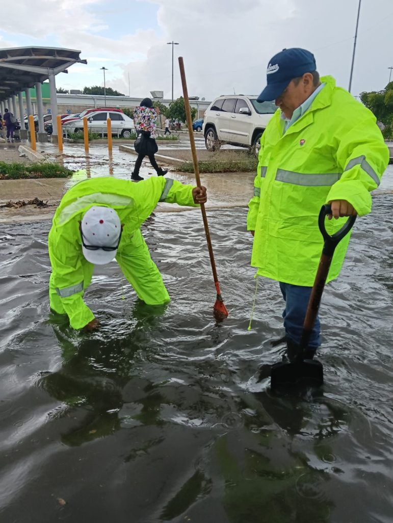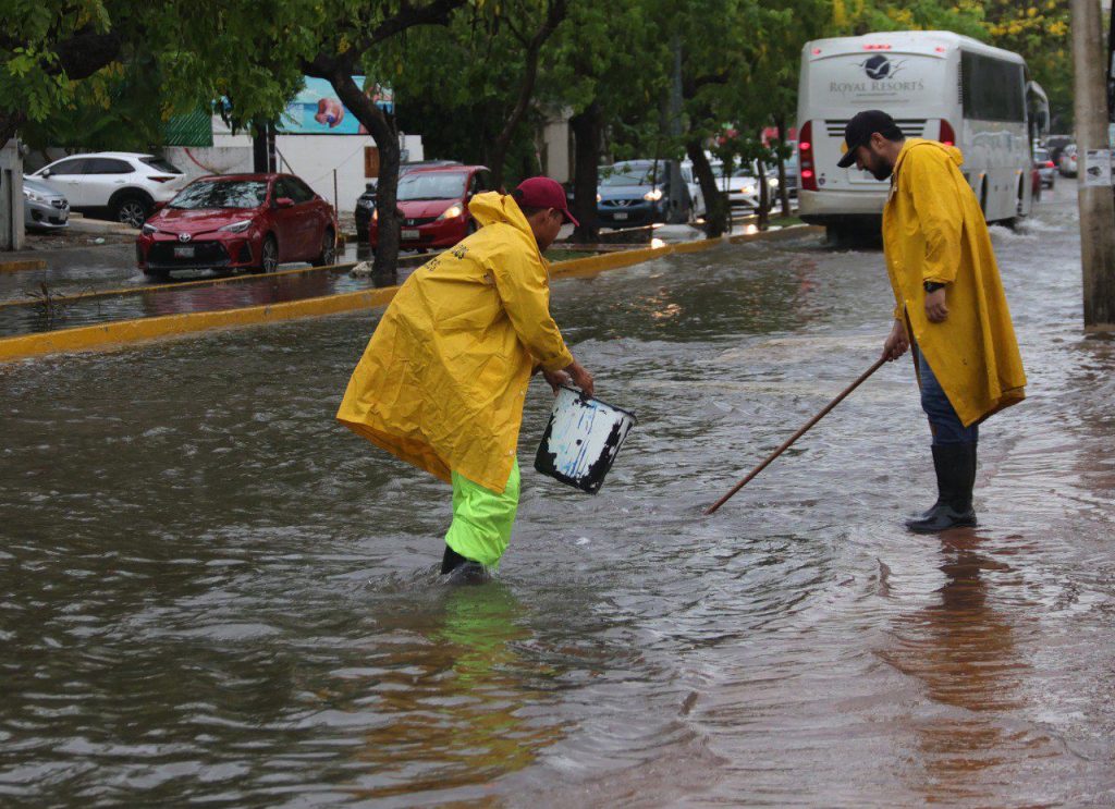 Más de 300 trabajadores y 25 brigadas de Servicios Públicos se desplegaron en distintas avenidas de Cancún para atender los efectos de la célula convectiva que provocó lluvias intensas en la zona noreste de la ciudad y que se estima permanezca de dos a tres horas.