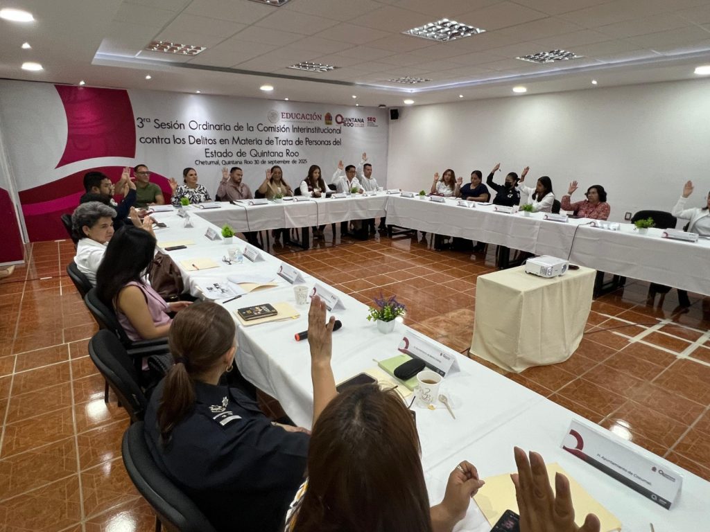 Quintana Roo refuerza las estrategias para prevenir, atender y combatir la trata de personas, tras los acuerdos alcanzados en la Tercera Sesión Ordinaria de la Comisión Interinstitucional Contra los Delitos en Materia de Trata de Personas 2025, realizada en la capital del estado.